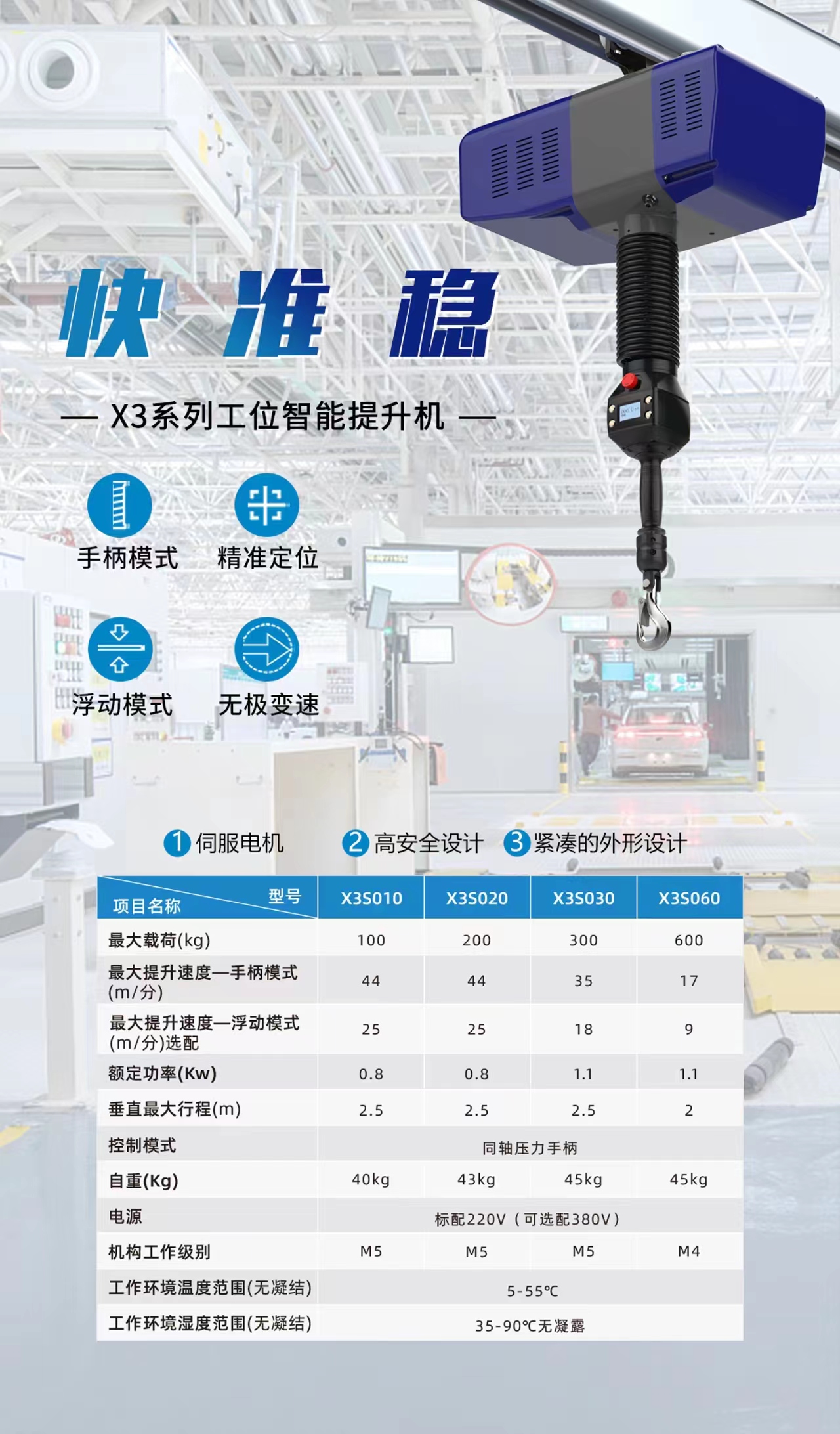 金軸智能提升機是一種集成了機械、電子、控制和信息技術(shù)的高科技產(chǎn)品。它采用了的電機驅(qū)動技術(shù)、精密的傳動系統(tǒng)和智能化的控制算法,實現(xiàn)了起重設(shè)備的運行和控制。與傳統(tǒng)的起重設(shè)備相比,金軸智能提升機具有以下幾個顯著的優(yōu)勢:高安全性:金軸智能提升機采用了多重安全保護(hù)措施,包括過載保護(hù)、短路保護(hù)、過載保護(hù)等,確保了起重設(shè)備的安全運行。同時,其智能化的控制算法還能夠?qū)崟r監(jiān)測起重設(shè)備的運行狀態(tài),及時發(fā)現(xiàn)并處理異常情況,避免了安全事故的發(fā)生。率:金軸智能提升機采用了的電機驅(qū)動技術(shù),能夠?qū)崿F(xiàn)快速啟動和停止,大大縮短了起重作業(yè)的時間。同時,其精密的傳動系統(tǒng)和智能化的控制算法,確保了起重設(shè)備的穩(wěn)定運行,提高了工作效率。:金軸智能提升機采用了的驅(qū)動器和控制系統(tǒng),能夠?qū)崟r監(jiān)測和調(diào)整起重設(shè)備的運行狀態(tài),升降精度可達(dá)0.05m/min-30m/min。
